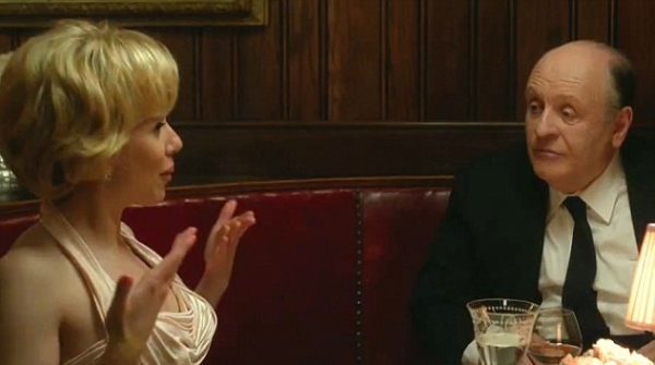 «Πώς σκοπεύεις να κάνεις το γύρισμα στην σκηνή του ντους; Βλέπεις από εδώ και πάνω (δείχνει το στήθος της) δεν με μπερδεύει κανείς γι' αγοράκι» λέει η Τζάνετ Λι (Σκάρλετ Γιόχανσον) σε μια σκηνή της ταινίας στον Άλφρεντ Χίτσκοκ (Άντονι Χόπκινς), ενώ ο ίδιος, όταν βρίσκεται με την σύζυγό του και της περιγράφει το γύρισμα στο μπάνιο τής λέει «Τα στήθη της είναι αρκετά μεγάλα. Είναι μια πρόκληση για μένα, να μην τα δείξω».